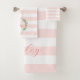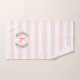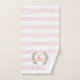 This fun trendy design features a blush pink and white striped background with colourful floral wreath. Personalise the design with your name and monogram or other text. Use the design tools to choose any background colours, edit the text fonts and colours or upload your own photos to create a unique custom set of bath towels to match any bathroom decor. The set includes a coordinating bath towel, hand towel and wash cloth or select individual towel sizes as needed.