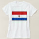 The front of this t-shirt boldly displays the Paraguayan flag with its distinctive emblem in a white band with a red band above and blue band below. This is matched at the back by an attractive map of Paraguay.
