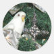 White parakeet or budgie all comfortable and pretty in a Christmas tree bird lovers Christmas holiday custom sticker