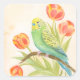 Parakeet with Tulips Square Sticker