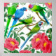 Painting of colourful parrots featuring plum headed, derbyan, monk, and Indian ringneck parakeets by avian artist, Carolyn McFann of Two Purring Cats Studio.