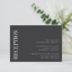 A petite wedding invitation enclosure card for your reception details, with "Reception" along the left side in classic white lettering, and your reception details aligned at the lower right. Designed to match our Parallel wedding collection. Our Ash colorway makes a classic statement with crisp white lettering on a soft black background.