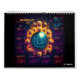 An eye-catching calendar in an unknown imaginary language. The theme is this calendar is from some parallel universe. Beautiful, striking imagery.
