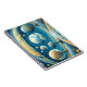 A surreal landscape unfolds, where planets and trees intertwine in a harmonious dance. The sky is awash with swirling celestial bodies, each planet-like tree bearing its own miniature cosmos. A winding path leads the eye through this fantastical scene, inviting the viewer to explore the depths of imagination.