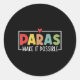 Paras Make It Possible Teacher Paraprofessional Pa Classic Round Sticker