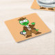 Parasaurolophus Dressed As Indiana Jones. Square Paper Coaster