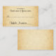 A wedding table setting place card  design with a printed background design in the style of vintage old paper, designed to look similar to a faux parchment pattern. The background is a pattern print in yellowy beige / tan colours. There is stylish black text that can be personalised.  Seating and table number cards for wedding guests.