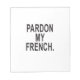 Funny yet very simple, Pardon My French is perfect for the mischievous fashionista looking for a humorous tee shirt, great for the pastry chef or French teacher, or for the Francophile with a sense of humor. In crisp black text or French Vanilla.