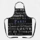 Vintage effect of names of landmarks in Paris, France written in white on black background. A wonderful image to wear when you're the chef, whether you're a Francophile or you just love words.