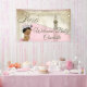 Paris baby shower banner with adorable African American ethnic baby girl wearing a pretty crown and string of pearls on a beautiful vintage pink Paris background. This cute Paris baby shower banner is easily customised for your event by simply adding the text of your choice.