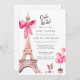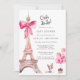 Cute watercolor Paris baby shower invitation features a watercolor Eiffel Tower, a cute French dog, macarons, and a shopping box with balloons. Personalise with your baby shower invitation.