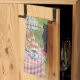 Charming Paris balcony scene featuring a black cat watching the Eiffel Tower while a delicious French breakfast of croissants, strawberries, and coffee sits on a checkered table. This illustrated Paris kitchen towel adds a cozy French café atmosphere to your kitchen and makes a perfect gift for cat lovers, Paris lovers, and fans of European travel decor. Original artwork by Caroline Bonne Müller.
