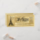 Paris birthday party invitation with beautiful Eiffel Tower and Paris script on a boarding pass ticket style background. You can add text to the Eiffel Tower area and you can change the background and text colour. This elegant black and gold Paris birthday party invitation is easily customised for your event by simply adding your details. This is a printed design with no real foil.