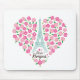 This desin features a heart shaped symbol with pink flowers and the Eiffel Tower.