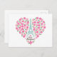 This desin features a heart shaped symbol with pink flowers and the Eiffel Tower.