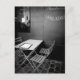 Black and white photography of cafe table & chairs outside a cafe in Paris.