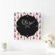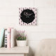 Chic wall clock features a pink and black eiffel tower pattern and can be personalised with your name or message.