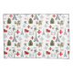 French Christmas with a vintage Eiffel Tower, fleur de lis, and PARIS text and wreath in black and white, along with holly, poinsettia, victorian Christmas trees and pine branches in red and green on white, to make a festive French Noel fabric bedding pillow case.