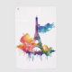 Grunge Paris design with colourful splatters in rainbow colours with Eiffel tower decoration