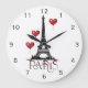 Paris, Eiffel Tower and Red Heart Balloons Large Clock