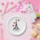 Paris, Eiffel Tower and Red Heart Balloons Paper Plate