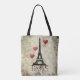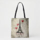 Paris, Eiffel Tower and Red Heart Balloons Script Tote Bag