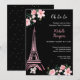 Paris Eiffel Tower Black and Pink Floral Birthday Invitation