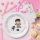 Paris Eiffel Tower Brunette Girl Paper Plate