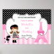 A cute Paris Eiffel Tower Brunette Girl Pink & Black Birthday Poster for that special occasion.
