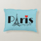 Eiffel Tower Paris France Design Accent Pillow with customizable background color.