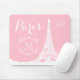 This chic pink mouse pad features a white Eiffel Tower graphic with "Paris" written in modern script. A monogram initial for you to personalise is framed by a white fancy scroll.
