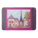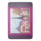 This bath mat has art by Kristie Hubler, inspired by the Eiffel Tower, Paris, France, and the indoor shop facades of Paris Las Vegas, in the pointillism technique, developed by French artist Georges Seurat, the painter of La Grande Jatte hanging in the Metropolitan Museum of Art in NYC 0 has a berry / fuschia / orchid colour border with grey lavender side borders