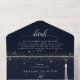 Paris Eiffel Tower Navy Gold Sparkle Wedding All in One Invitation. This custom modern wedding design can easily be personalised with your own wedding details.