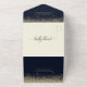 Paris Eiffel Tower Navy Gold Sparkle Wedding All in One Invitation. This custom modern wedding design can easily be personalised with your own wedding details.
