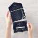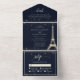 Paris Eiffel Tower Navy Gold Sparkle Wedding All I In One Invitation