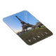 A beautiful panoramic view of the Eiffel Tower in Paris printed on a souvenir fridge magnet.