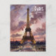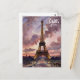 Paris Eiffel Tower Twilight Watercolor Custom Text Postcard