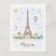 Paris Eiffel Tower Watercolor | France Holiday Postcard