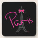 This modern "Paris, France, Eiffel Tower with pink bow" design by Inge Lewis looks great on this black hard plastic coaster. Great gift for anyone. Find more matching items at the ingeinc.com store