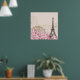 Paris Eiffelturm France, French Vintage Ephemera Art. European architecture, landmark monument. Magnolia flowers.