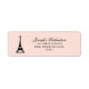 These stylish address labels have a blush pink background and a simple, elegant black image of the Eiffel Tower. A chic choice for any Paris or French theme wedding.