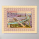 This elegant and unusual Victorian trade card image, awash in a beautiful lavender colour, describes the layout of the 1900 Expo in Paris, France. A collection of boats travel lazily along the aquamarine blue Seine. A colourful, pink-tinted sky compliments the soft lavender colours of the central illustration. The title, 'Paris' is written on the beautiful image.