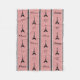 Paris illustration with Eiffel Tower and heart decoration and Paris text design on black, white and pink striped background