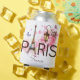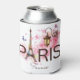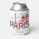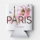 Beautiful can cooler that features the word Paris, France with the "A" in Paris made up of the Eiffel Tower, there's a beautiful vintage lamp, butterflies, and flowers.