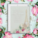 Elegant wedding invitation for the French/Parisian celebration. A gold Eiffel tower sits surrounded by pink and white roses and green eucalyptus leaves and foliage. Gold glitter accents finish off this beautiful invitation. The background colour of mint green is customisable to any colour you want. Text is fully customisable, as well, so use this invitation for any type of wedding elebration you may be planning.