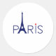 Paris France Eiffel Tower Text and Heart Classic Round Sticker