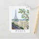 Paris France Eiffel Tower Travel Illustration Postcard