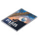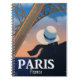 Paris France Eiffel tower travel poster print, European vacation poster of The french capital in a warm evening sky overlooking the famous tower.