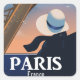Paris France Eiffel tower travel poster print, European vacation poster of The french capital in a warm evening sky overlooking the famous tower.