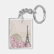 Paris France Travel Design with Eiffel Pink Roses Key Ring